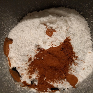 6: Weigh out the Brown Sugar and put in the new bowl with the Cinnamon. Melt the butter and add, mixing well to get the lumps out.