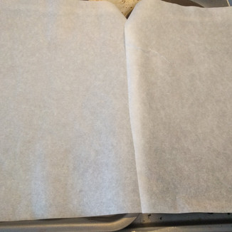 7: Once the hour is up, preheat the oven to 180c and get the bowl out of the fridge. Prepare some baking trays with some baking paper, you will need to bake one batch of cookies separately unless you have a bigger oven. The dough should be stiff enough for the spatula to stand on it's own.